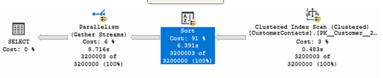 当我们考虑 SELECT * 时,有两个性能方面需要考虑。第一个是将数据发送到应用层。在这种情况下,我们的应用程序只需要我们发送三列,总共9字节。如果我们向应用程序发送所有列,那么每行的大小将达到每行61字节。这意味着每行额外增加了51字节。想象一下,表中有250万条销售订单。这意味着我们无缘无故地通过网络发送了额外的121MB数据。